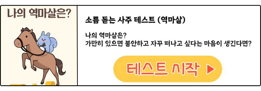 무료 사주 심리 MBTI 테스트 상관관계 역마살 연애운 음양오행 매력 성격 애정운 도화살
